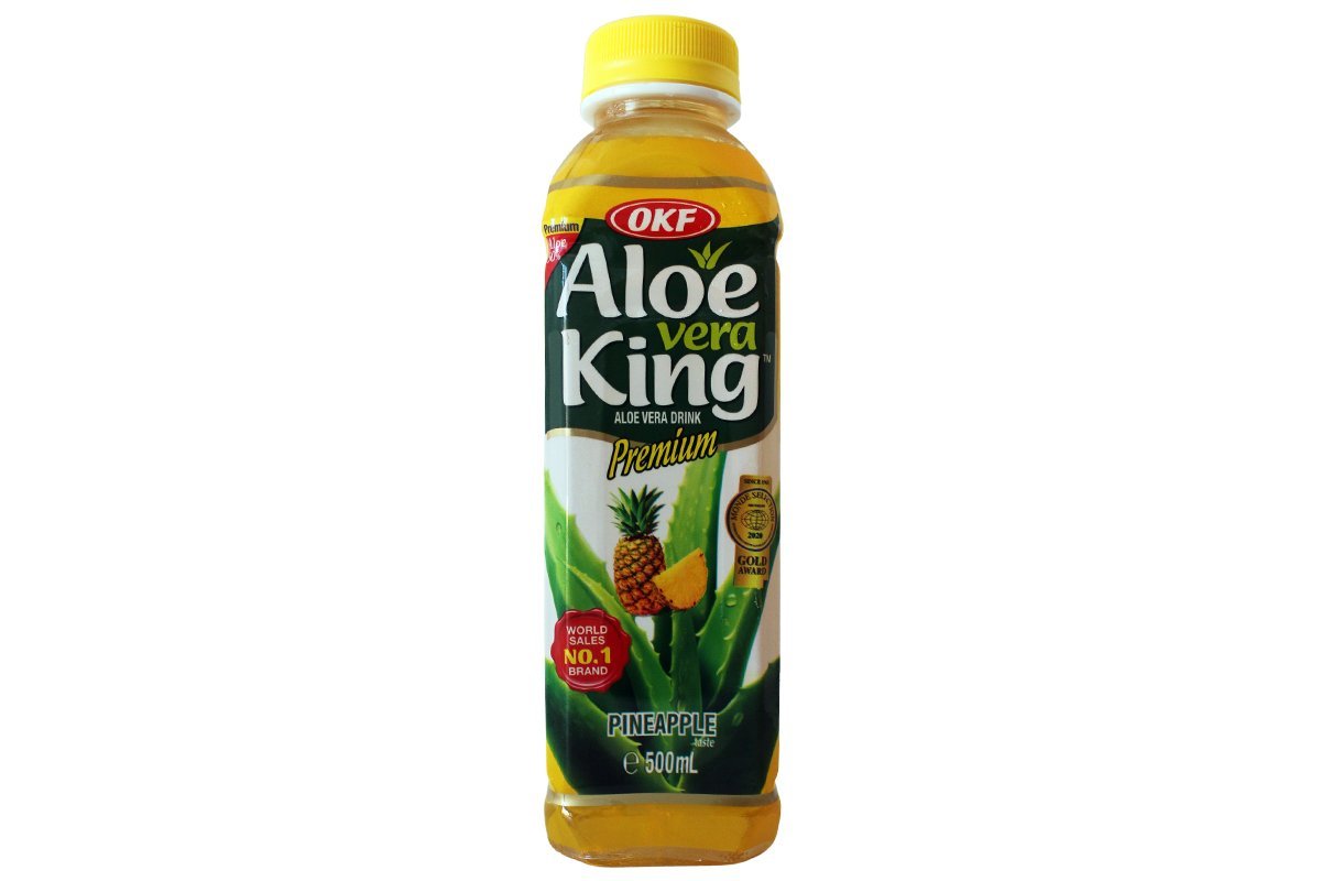 Si vous appréciez les bienfaits de l'Aloé Vera mais que vous n'aimez pas son goût légèrement amer, la boisson Aloe Vera King de chez OKF à l'Aloé Vera et au goût d'ananas est faite pour vous !
