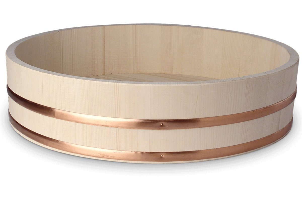 Le hangiri est fabriqué en bois cerclé de haute qualité, assurant ainsi sa durabilité et sa robustesse.