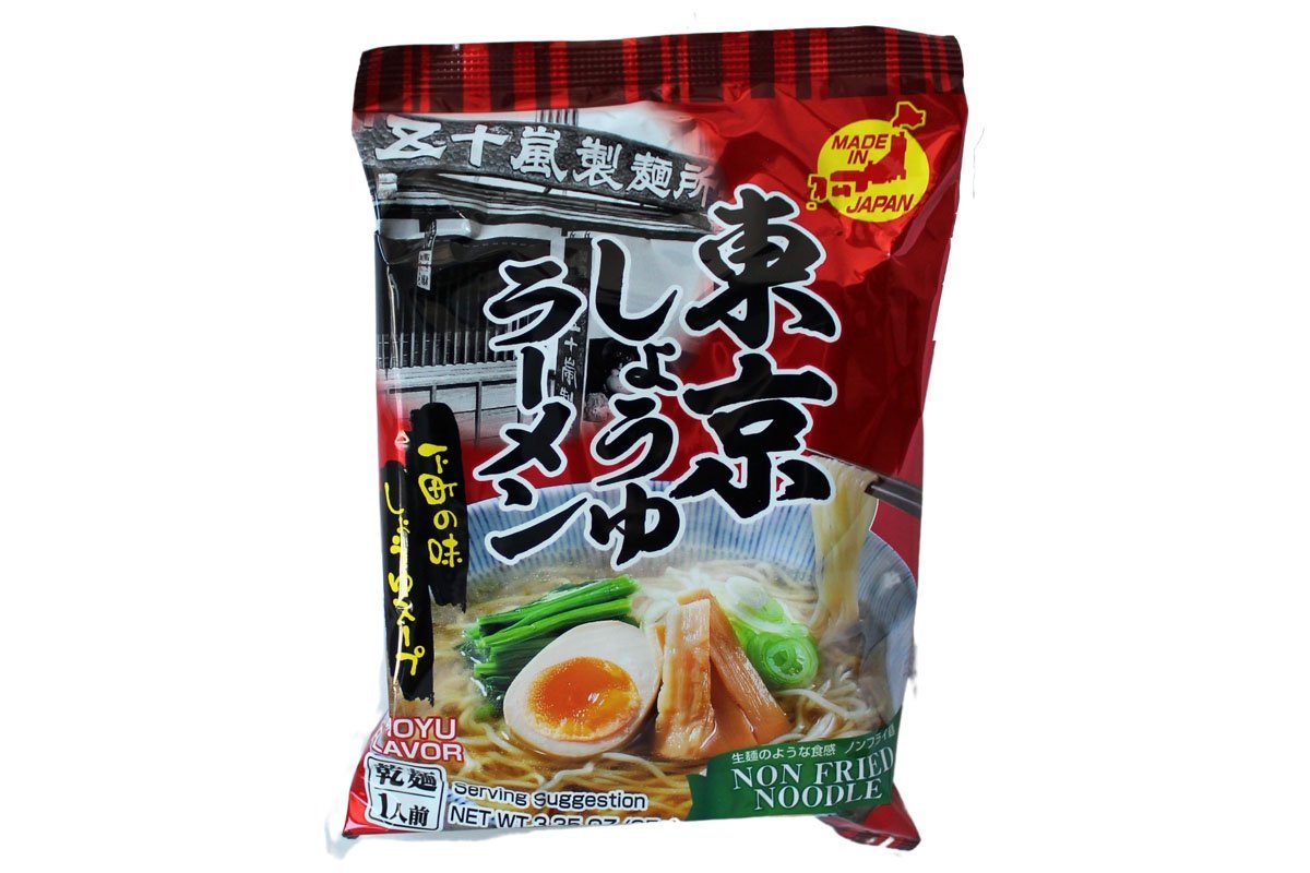 Ce paquet contient une portion de nouilles ramen sèches et un sachet de sauce saveur shoyu.