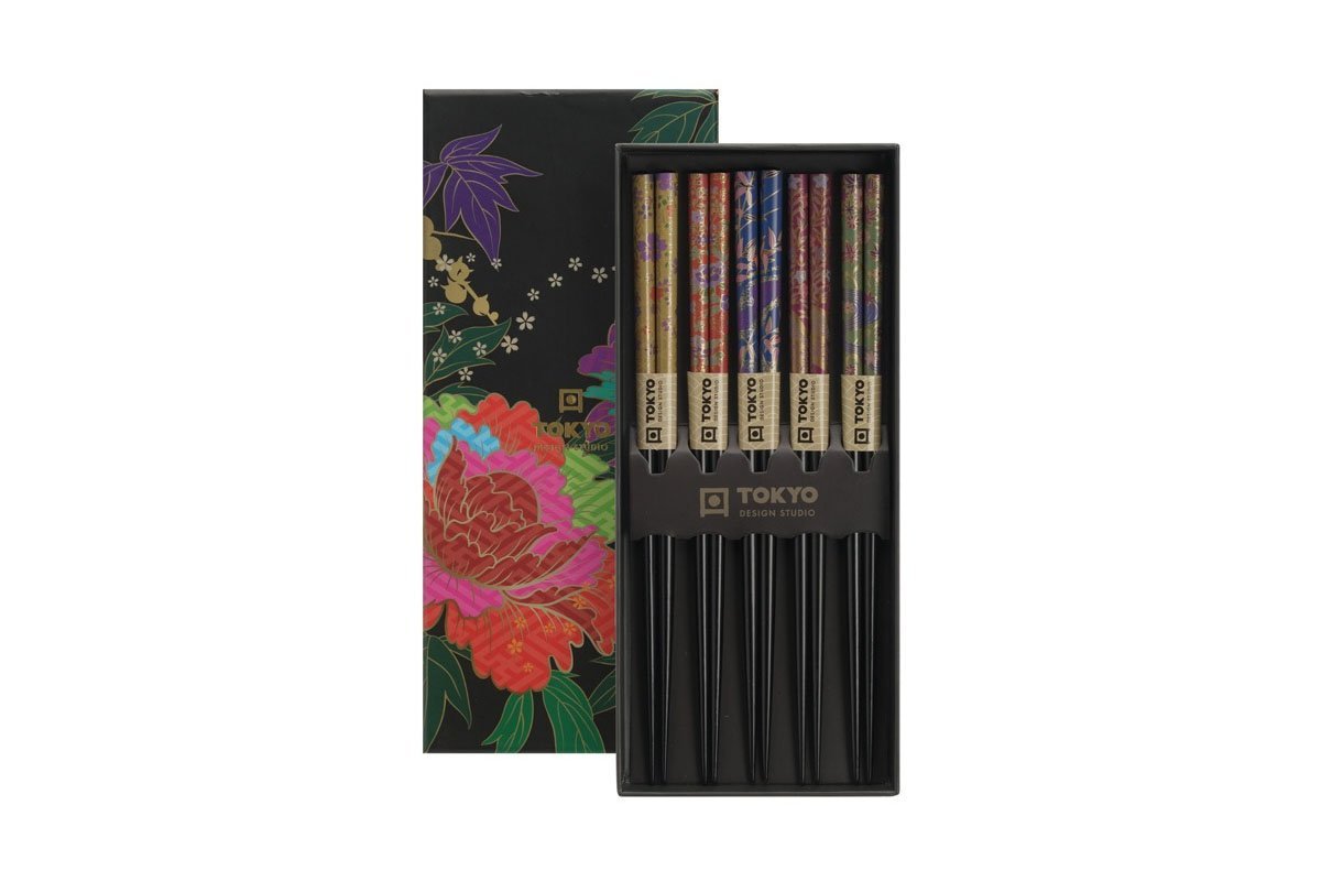 D'inspiration Japonaise, cet ensemble magnifique réalisé par Tokyo Design Studio comprend 5 paires de baguettes en bois d'une longueur de 22,5 cm.