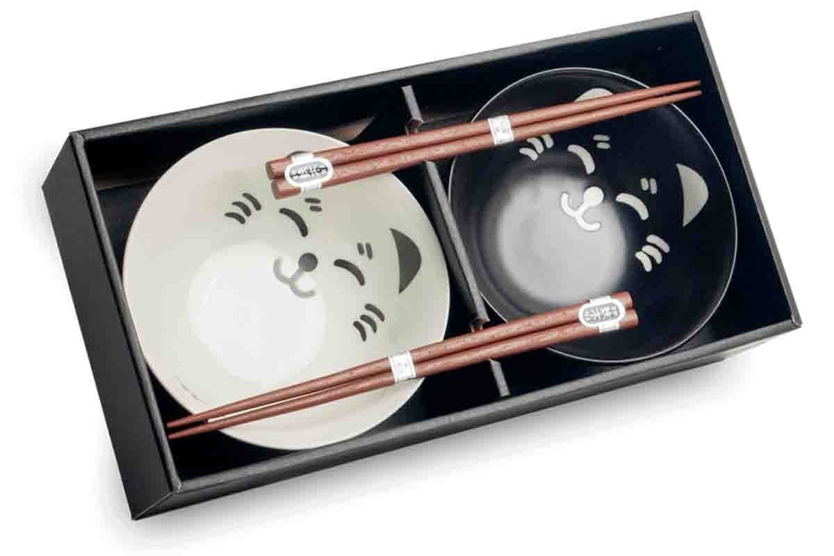 Ensemble bols et baguettes "Chats Noirs Chats Blancs"
